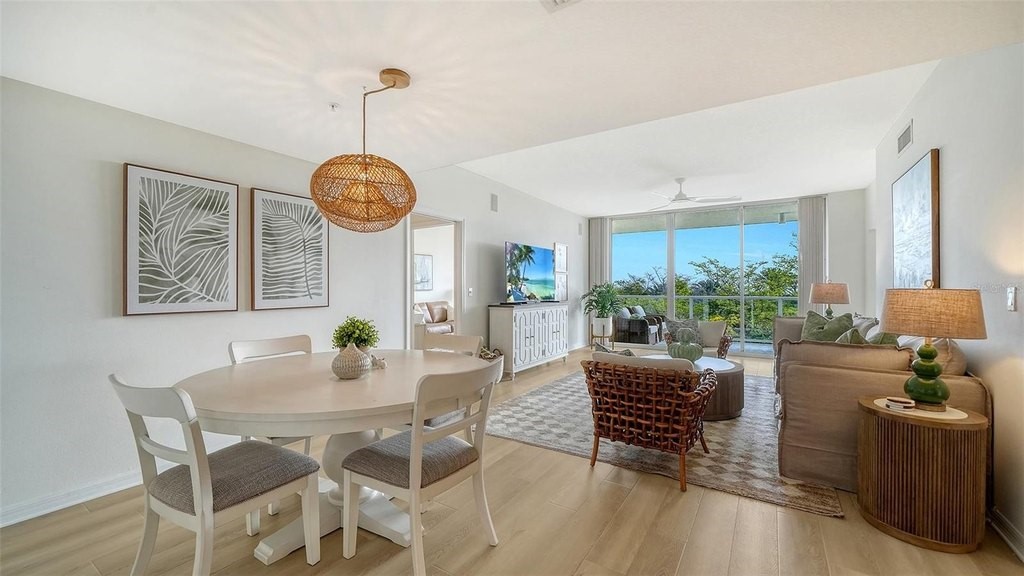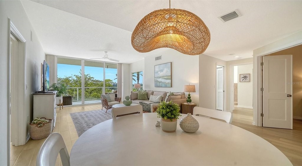 Discover the pinnacle of coastal elegance on Lido Beach! This stunning TURNKEY FURNISHED, 3-bedroom, 2.5-bath residence at L'Elegance is move-in perfect and showcases a sweeping 39-foot terrace with breathtaking views of South Lido Park, the iconic Ringling Bridge, and the Sarasota skyline. Gleaming new wood-look tile floors flow seamlessly throughout, adding a fresh, modern warmth to every room. The thoughtfully designed kitchen features crisp white cabinetry, gleaming granite countertops, a ceramic tile backsplash, and stainless steel appliances. The expansive primary suite serves as a true sanctuary, featuring a generous walk-in closet, an indulgent soaking tub, a separate glass shower, and dual vanities crafted for everyday luxury. The spacious second bedroom, currently enjoyed as a stylish den and study, offers the added bonus of direct terrace access - perfect for morning coffee or an inspiring work-from-home setting with stunning views. A versatile third bedroom with its own half bath provides ideal flexibility for guests or additional living needs. A dedicated interior laundry room with a full-size washer and dryer adds effortless practicality to daily living. L'Elegance sets the standard for resort-style community living, offering two lighted Har-Tru tennis courts, a heated Olympic-size pool perched above the pristine shoreline, and an elegant Gulf-view social lounge ideal for entertaining. A fully equipped fitness center with men's and women's saunas keeps wellness front and center, while around-the-clock security at the guard-gated entrance provides peace of mind. Secure under-building parking rounds out the convenience. Situated on 400 feet of exclusive Gulf of Mexico beachfront, pet-friendly and perfectly poised between luxury and nature, this residence embodies the very best of the Sarasota coastal lifestyle. St. Armands Circle, Longboat Key, and Downtown Sarasota are just minutes away, offering an unrivaled mix of acclaimed dining, boutique shopping, recreation, and cultural experiences. Don't miss this opportunity to call L'Elegance home - consistently recognized as Lido Beach's most coveted address.